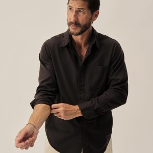 Classic fit short sleeve sweater tee with a straight hem. Yarn-dyed 16 gauge cotton jersey features light slub texture. Features double layer 1×1 ribbing at the collar and rib finishing at the cuffs and hem. Constructed with hand-linked seams for improved durability.