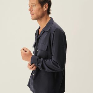 The Casita Camp Shirt channels the casual poise of 1950s and ’60s resort wear. Woven for warmer weather, the ultralight yarn-dyed Tencel brings a smooth, airy drape to cool summer nights. Designed with a period fit, a straight hem, side vents, and authentic details like a collar loop button fastener, patch-and-flap chest pockets, and real troca shell buttons. Finished with single-needle construction, a French placket, and a garment rinse for a soft, lived-in feel.
