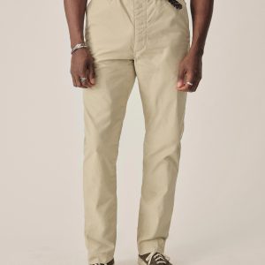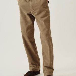 The El Camino Pant is a western-inspired trouser crafted from brushed Japanese cotton twill, built with 1960s-era frogmouth front pockets, waist tab closures, and a split waistband. Modeled after polished rodeo styles, the leg runs slim and straight from a mid-high rise down to a boot-ready opening.