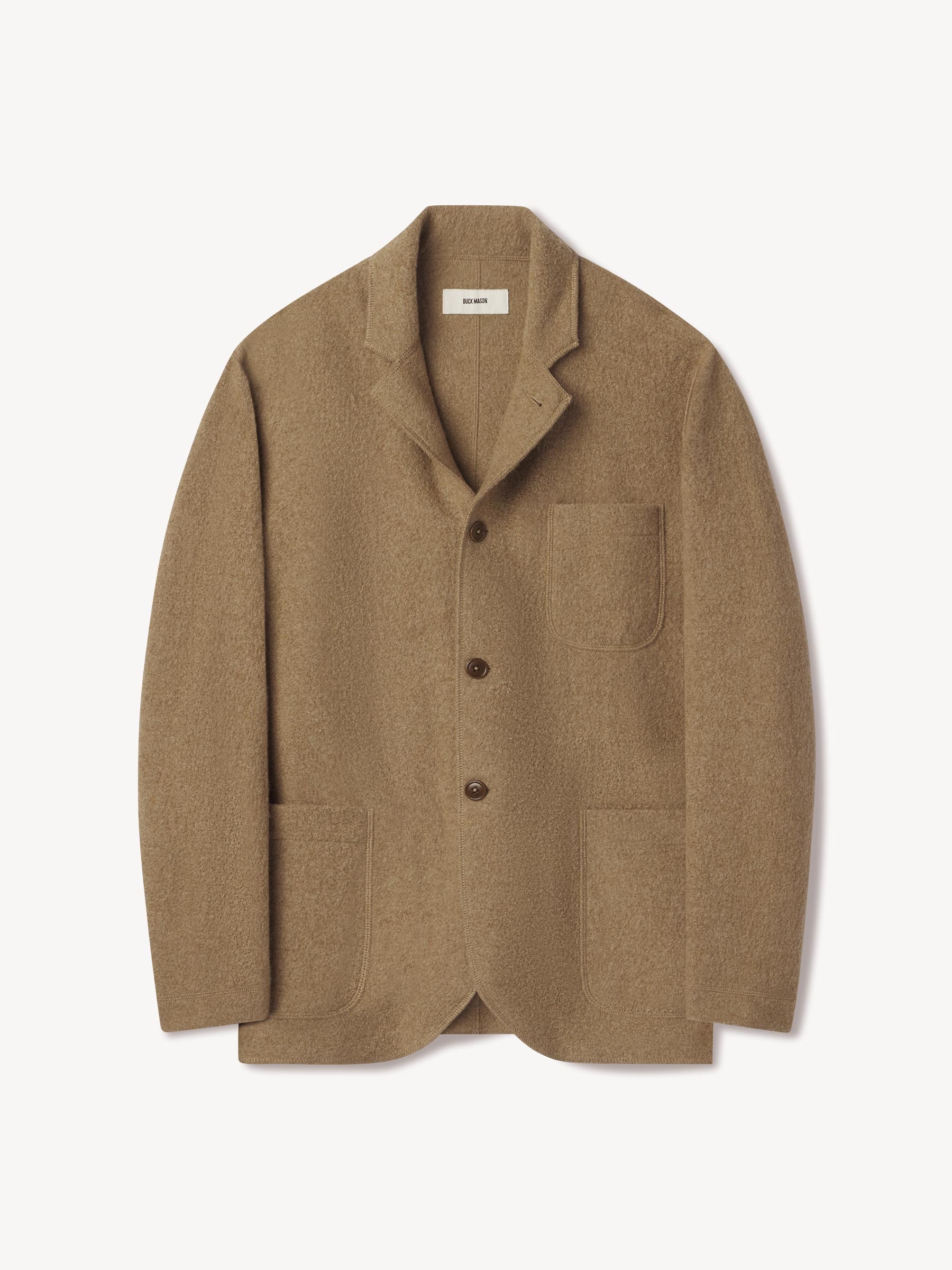 Classic fit chore coat with a slimmer cut through the arms and room in the torso for layering. This 340 GSM felted merino wool has been twice boiled for improved insulation and durability. Details include three patch pockets, real horn buttons, and a notch collar. Constructed with hand-sewn facings and cover-stitching throughout.