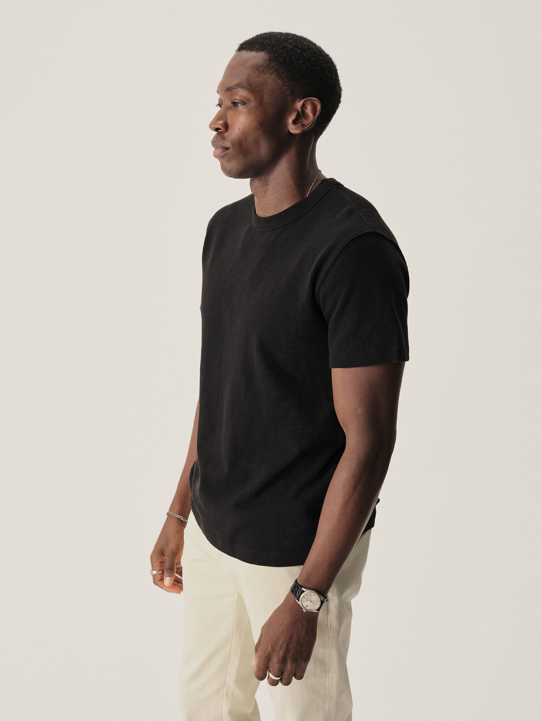 Our full-cut Field Spec Tee, built with hard-wearing, rugby-weight cotton and washed for a soft, lived-in texture.