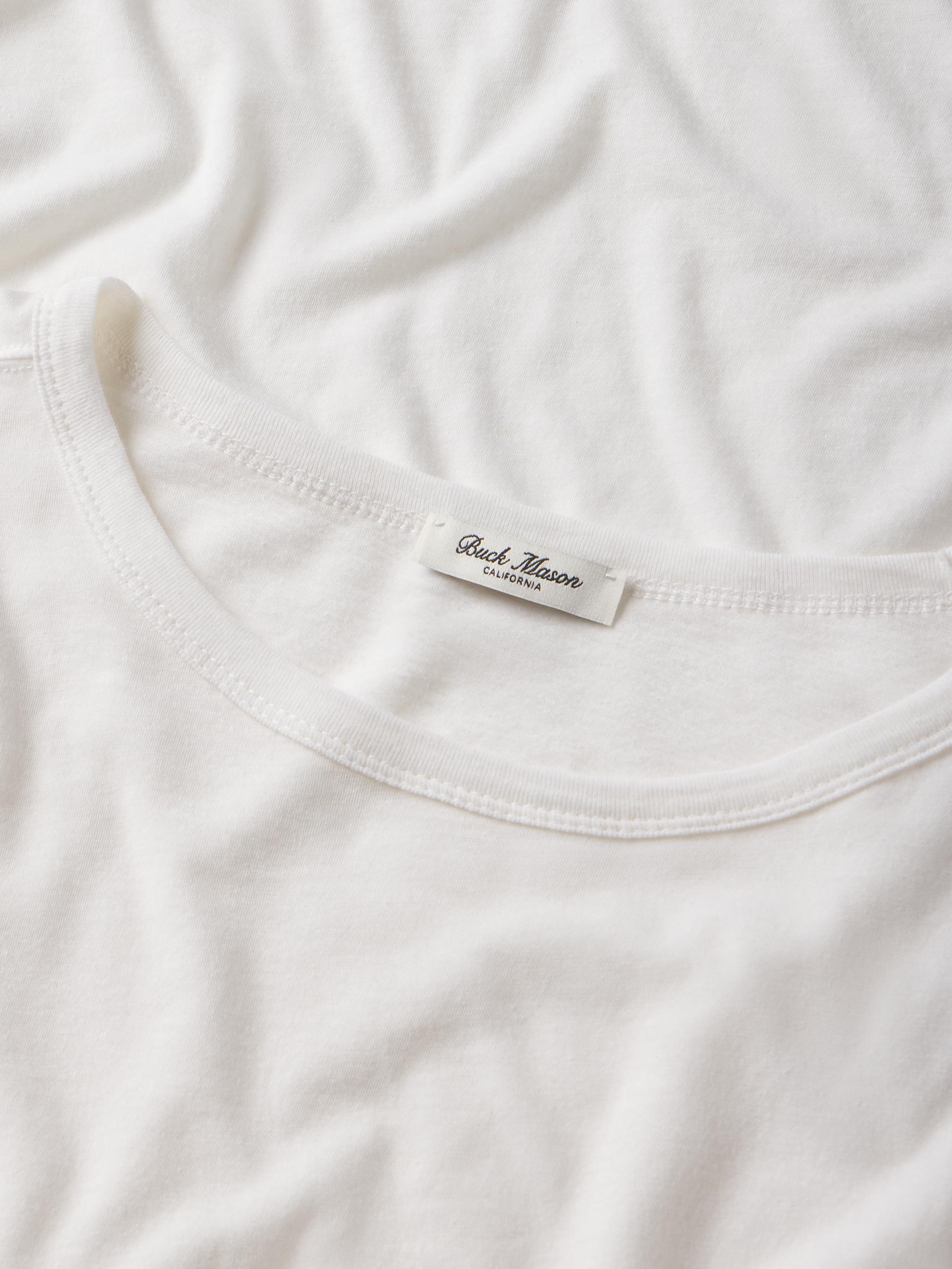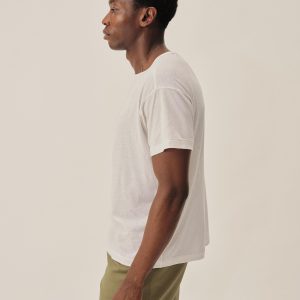 Crafted from a custom-spun, super fine 56 singles blended cotton-linen yarn, spun and knit exclusively in Japan. This fabric is designed to combine the smoothness of a premium yarn with the subtle texture of something more rugged. The result is a tee that’s smooth, cool, and light as air with a subtle silky hand feel. Finished with a rib-bound crewneck, blind hems at the sleeves and bottom, and overlocked seams.