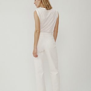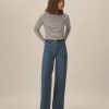 Made from a midweight denim, these are classic five pocket jeans with all the right details – copper rivets, metal tack button waistband, and a button fly. Cut in a generous 11.5″ high rise and wide leg fit with a 32″ inseam, these jeans have been washed for a lived in feel.