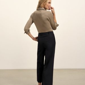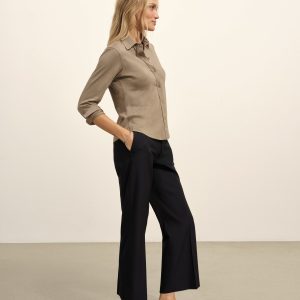 Mid-rise cropped trousers, cut from 100% Japanese wool. Featuring front slash pockets and back welt pockets with a single button closure. Finished with horn buttons, a hook and bar fastener, and a stay button.
