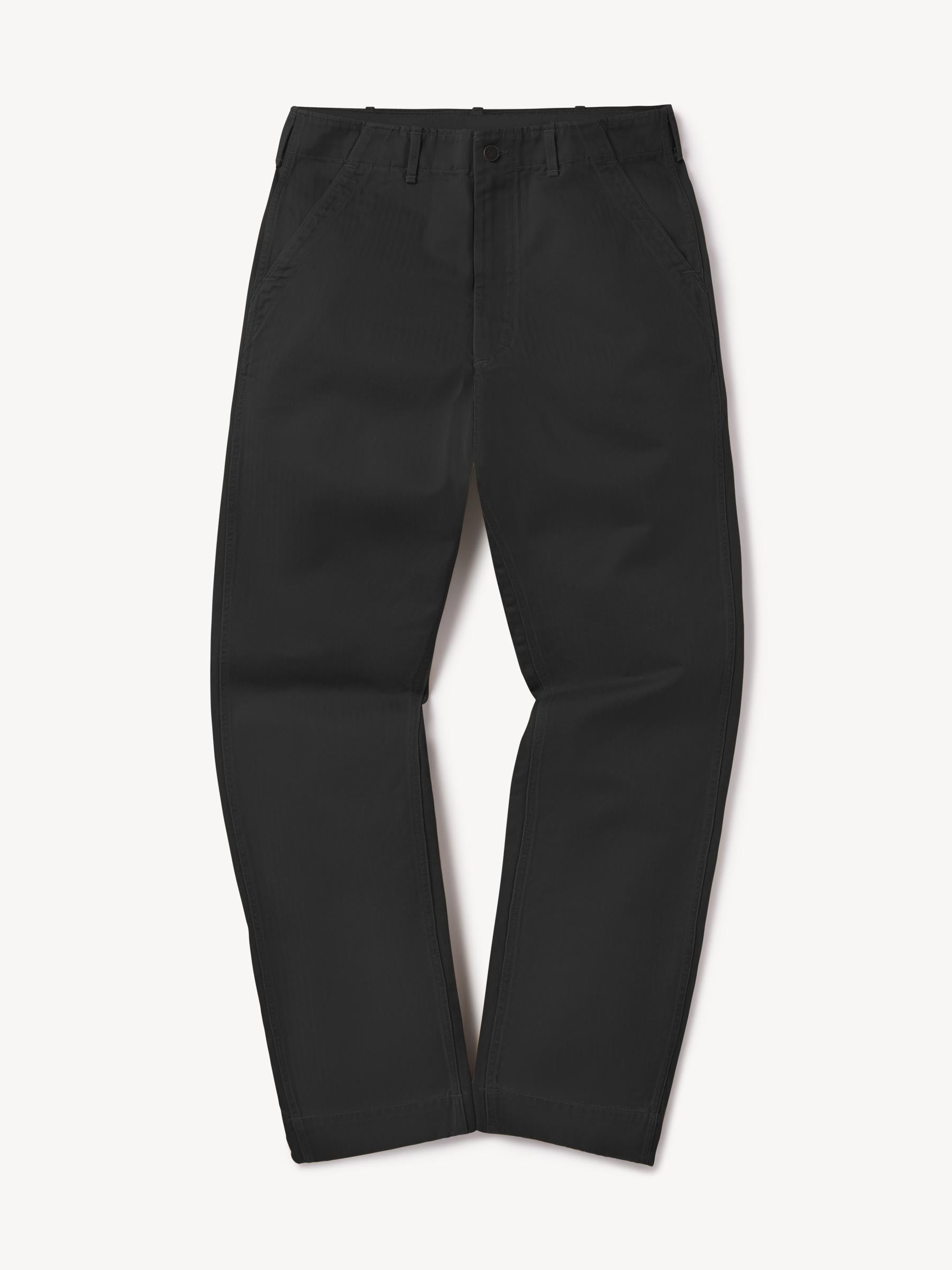Our homage to WW2-era military style fatigues, cut in a true-to-original relaxed fit with a slightly higher rise and straight leg. This lightly structured 9.4 oz.cotton twill has a herringbone weave and has been garment washed for a lived-in feel. Features a Hollywood waistband, felled seams, patch and flap back pockets, and 13-star tack buttons — all true to the original WW2 model.
