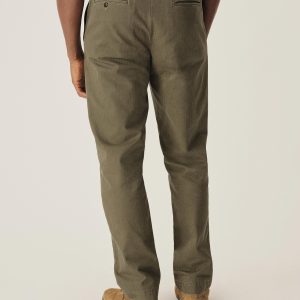 The classic officer’s pant in our Maverick Slim Fit: mid-rise, slim through the thighs with a taper below the knee. Cut from a midweight cotton HBT that’s been washed to achieve the same look and feel of vintage service uniforms. Featuring a one-piece “Hollywood” waistband, slash front pockets, welted back pockets, and a welted coin pocket. Finished with real corozo buttons. Garment washed for a lived-in feel. Button fly.