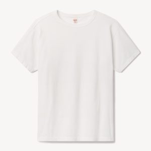 Classic fit short sleeve crewneck tee with our signature curved hem, cut from USA-grown and milled 140 GSM jersey knit from long-staple Supima cotton with a soft, smooth hand and sewn at BM Knitting Mills in Mohnton, PA. Constructed with self-neck binding and a flat stitch finish for comfort. Garment washed with enzymes and softener for a lived-in feel.