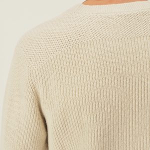 Classic fit crewneck sweater in a homespun textured cotton rib. Constructed with hand-linked seams, double layer ribbing at the collar, and racking stitch detailing at the cuffs.