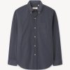 Classic fit button down collar shirt cut from a featherlight 3 oz cotton poplin. Details include mother of pearl buttons, a single scallop pocket, and a box pleat at the back. Constructed with clean finished seams. Garment washed for a lived-in look and feel.