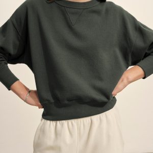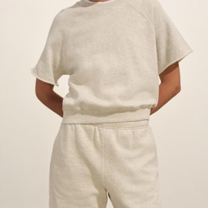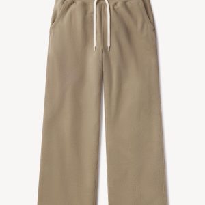 Straight leg, high-waisted 2×2 rib knit pant cut from 295 GSM stretch cotton that holds it shape. Fits comfortably at the waist with a wide elastic waistband with a full length inseam measuring 31 3/4”. Garment washed for a lived-in feel.