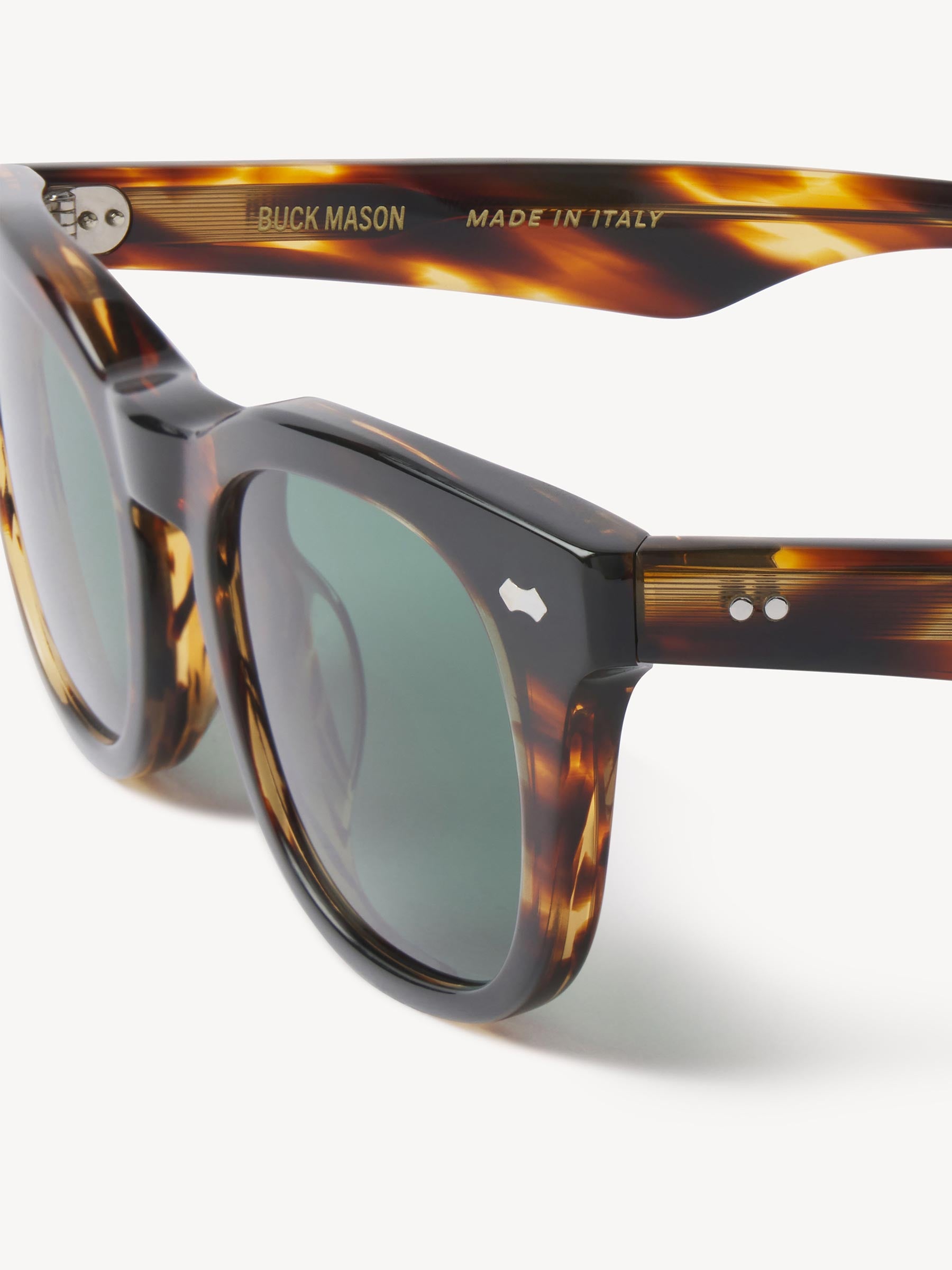 Inspired by the iconic sunglasses styles made popular during the 50s and 60s, the Caddy reflects a more balanced take on a signature style adopted by Americans of every background. Available in four different finishes and lenses, they are made in Italy from lightweight and durable Italian acetate with anti-reflective CR39 lenses that offer full UV400 protection. Angled 5-barrel hinges from Germany provide unparalleled support and stability. The universal bridge fits most face shapes.