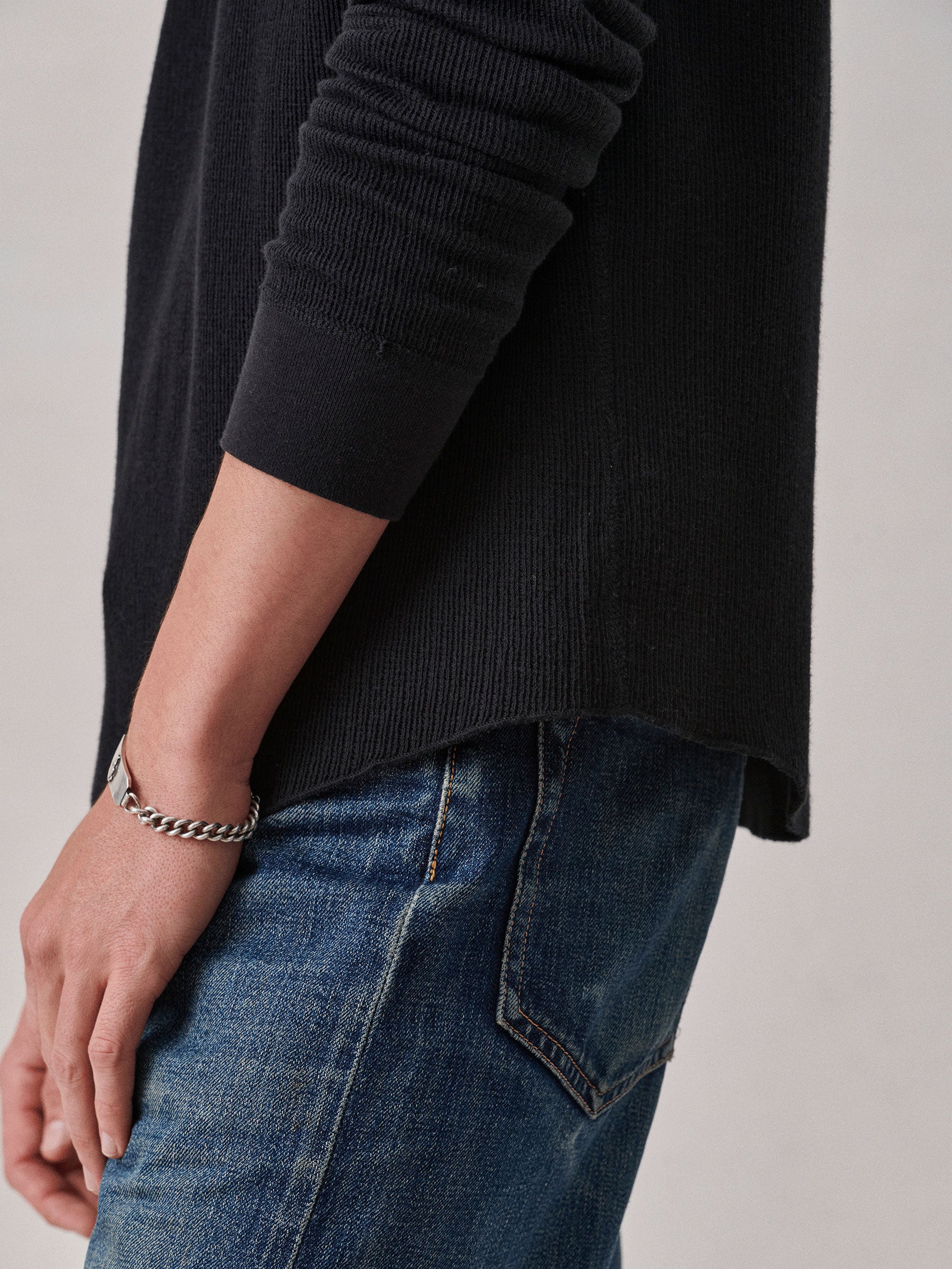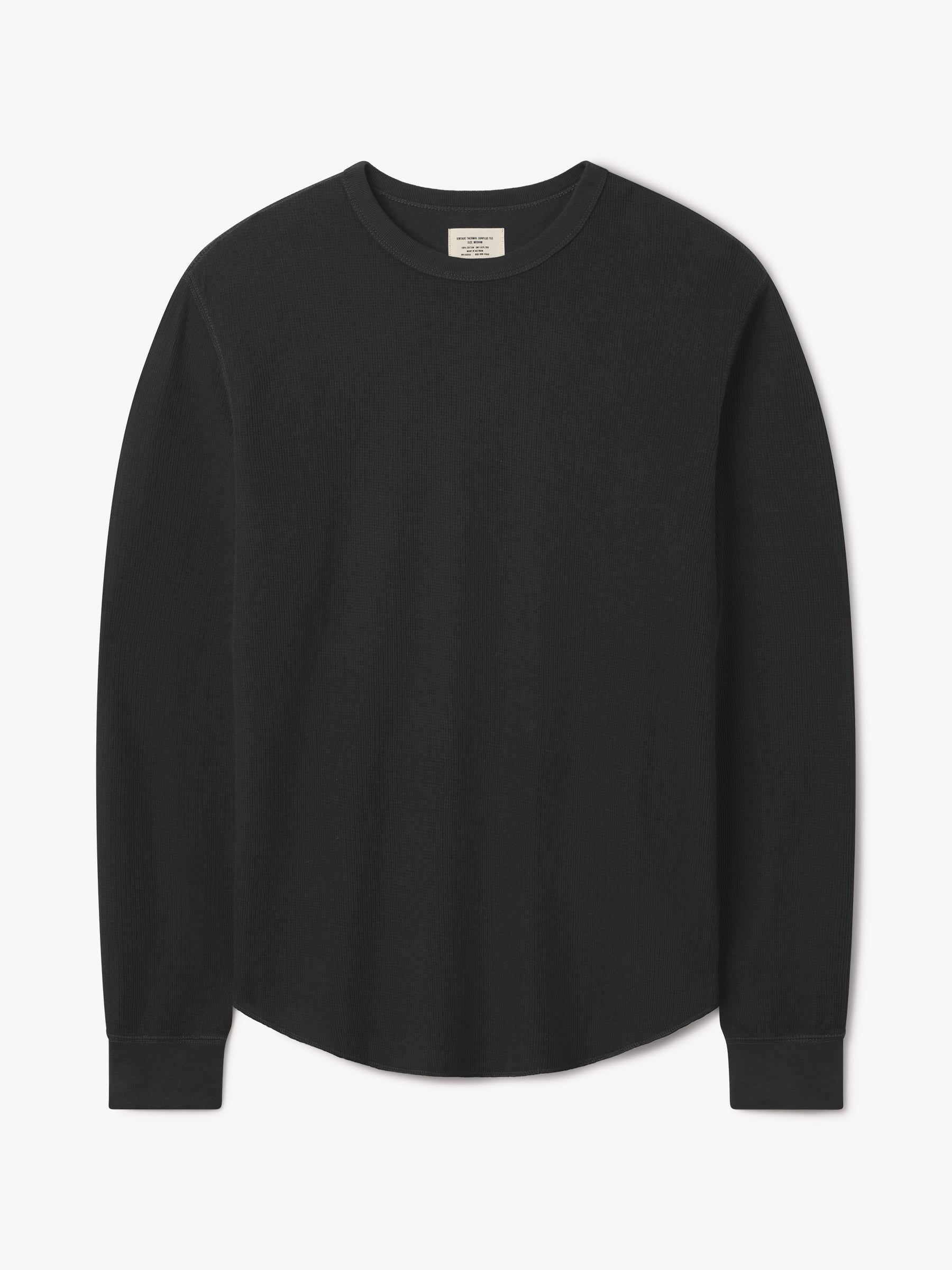 Classic fit thermal long sleeve crewneck tee with our signature curved hem. This 250 GSM French rib cotton double knit features a waffle-knit face and a smooth jersey back. Constructed with ribbed cuffs and flat-lock stitching throughout for improved comfort and durability. Garment washed with enzymes and softener for a lived-in feel.