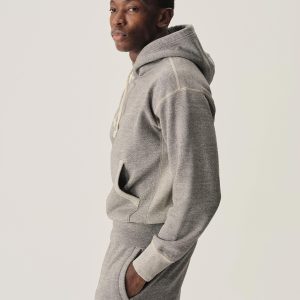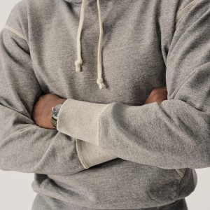 A midcentury-inspired hooded sweatshirt made from plush, not-too-heavy, not-too-light, welterweight French terry. Features a double-layer hood and kangaroo front pocket.